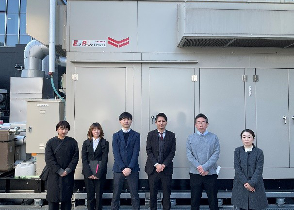 定格出力420kWのガスコージェネレーションとの記念撮影。